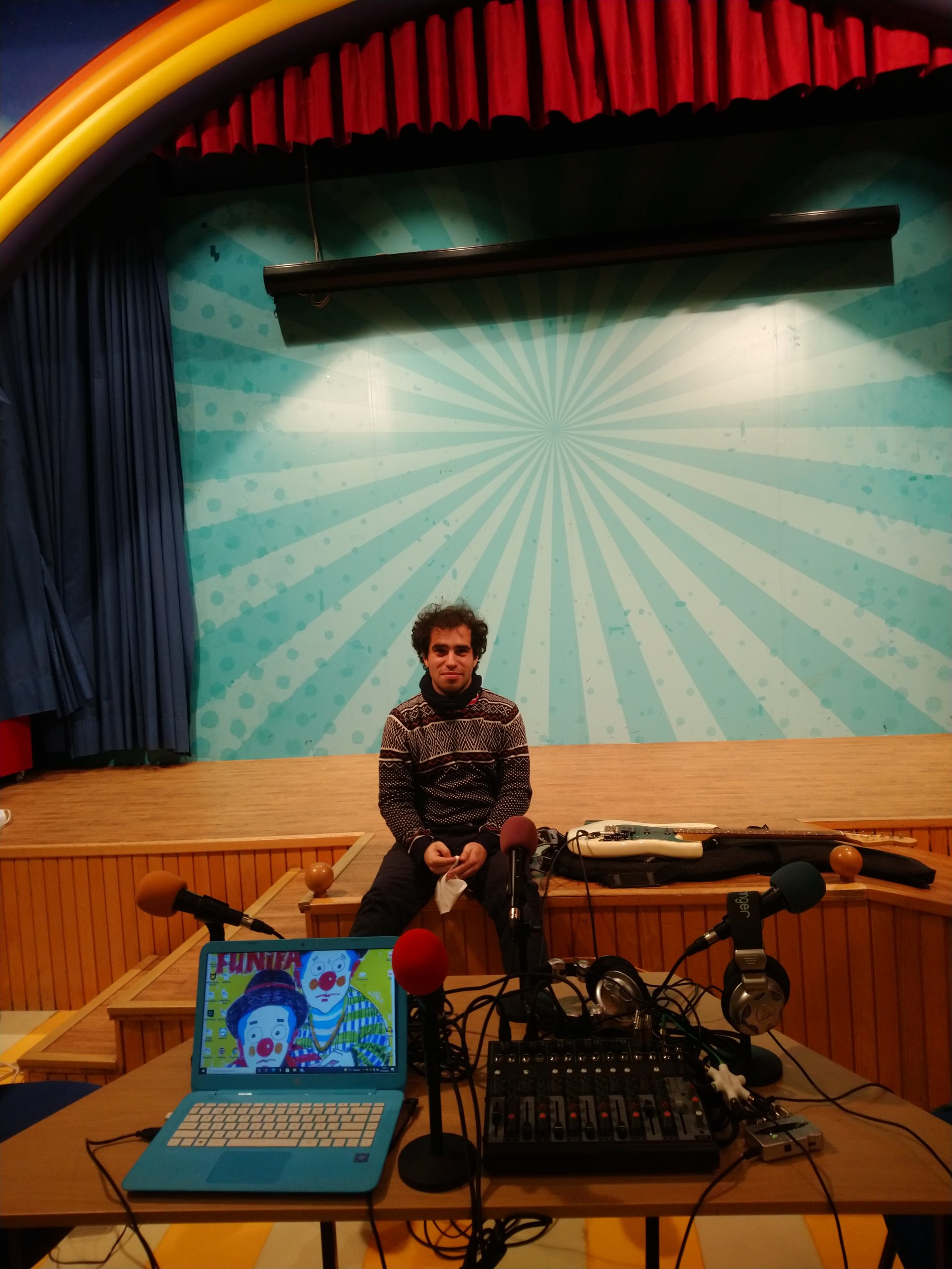 El teatro del Hospital Niño Jesús (hospital madrileño frente al parque de El Retiro) es un lugar mágico, verdadera factoría de payasos. En éste teatro-circo nos hemos reunido cuatro payasos para charlar de lo payasesco, pero a la vez de lo payasil. Somos Tato, clown carablanca; Joaco Showman, payaso y mago y malabarista; y Funifá y Lufo, simplemente payasos.